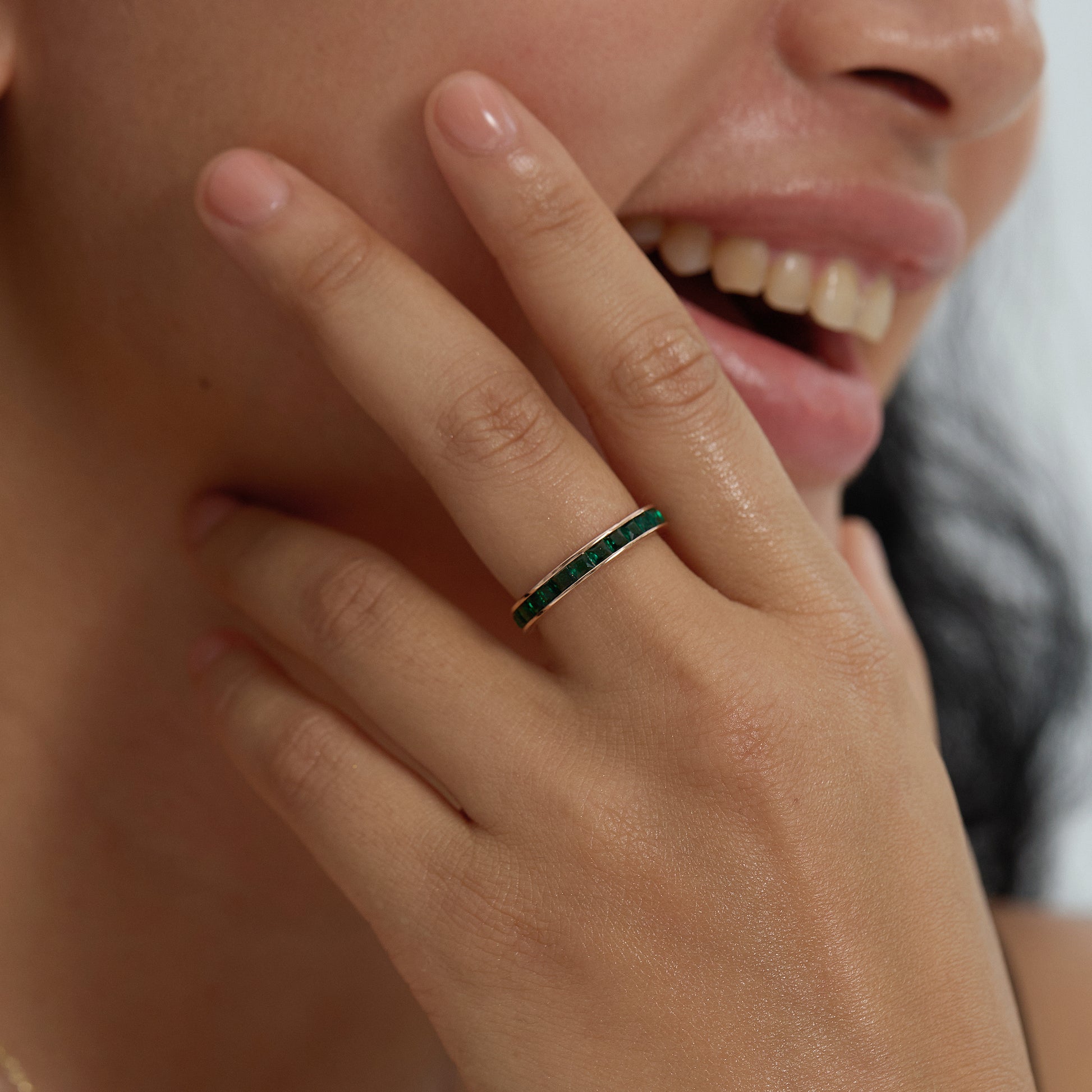 The Everline Ring is a continuous flow of vibrant green — a symbol of renewal, growth, and enduring balance. Its refined band, accented with meticulously set emerald-toned stones, captures the pulse of positivity in a form that’s subtle, sleek, and deeply meaningful.