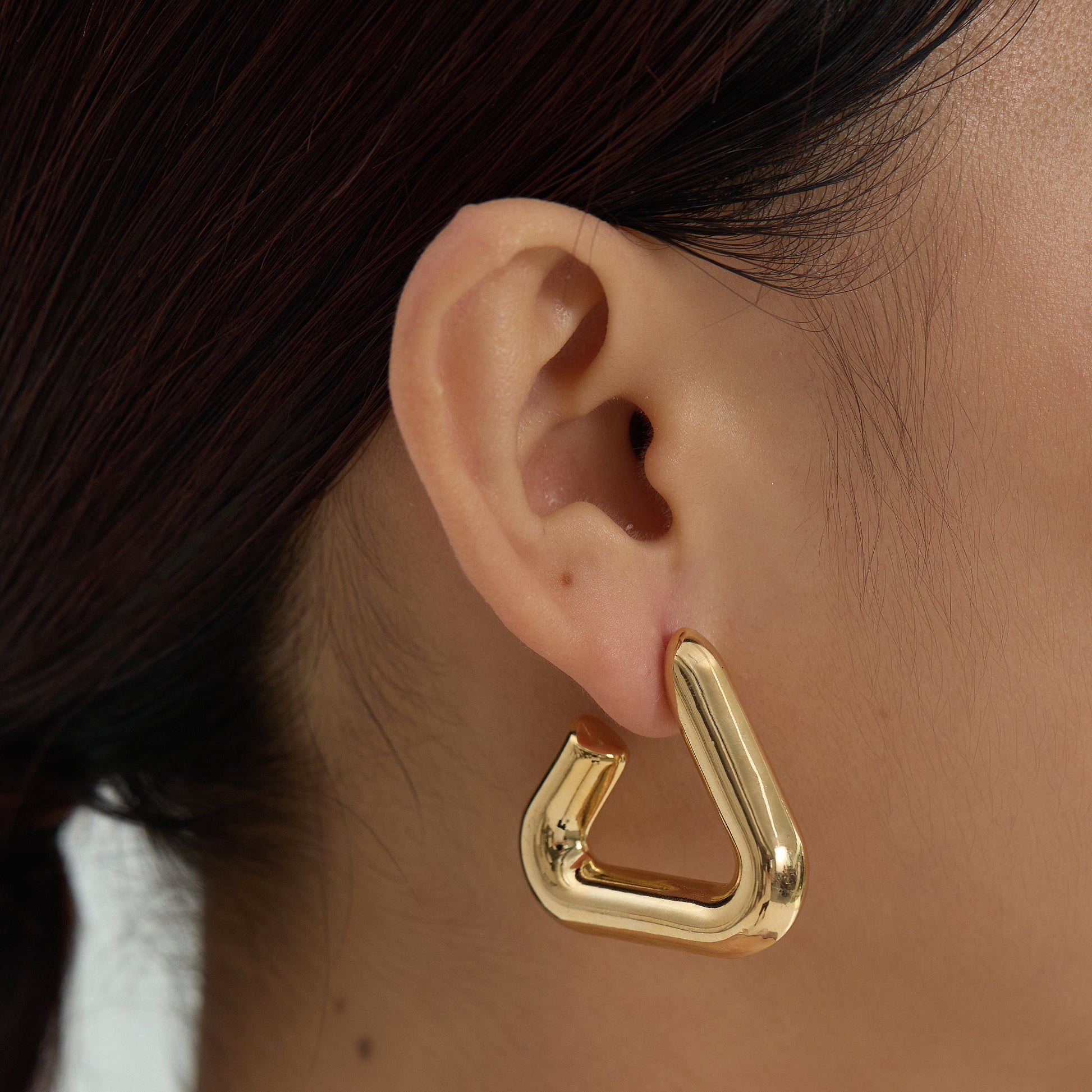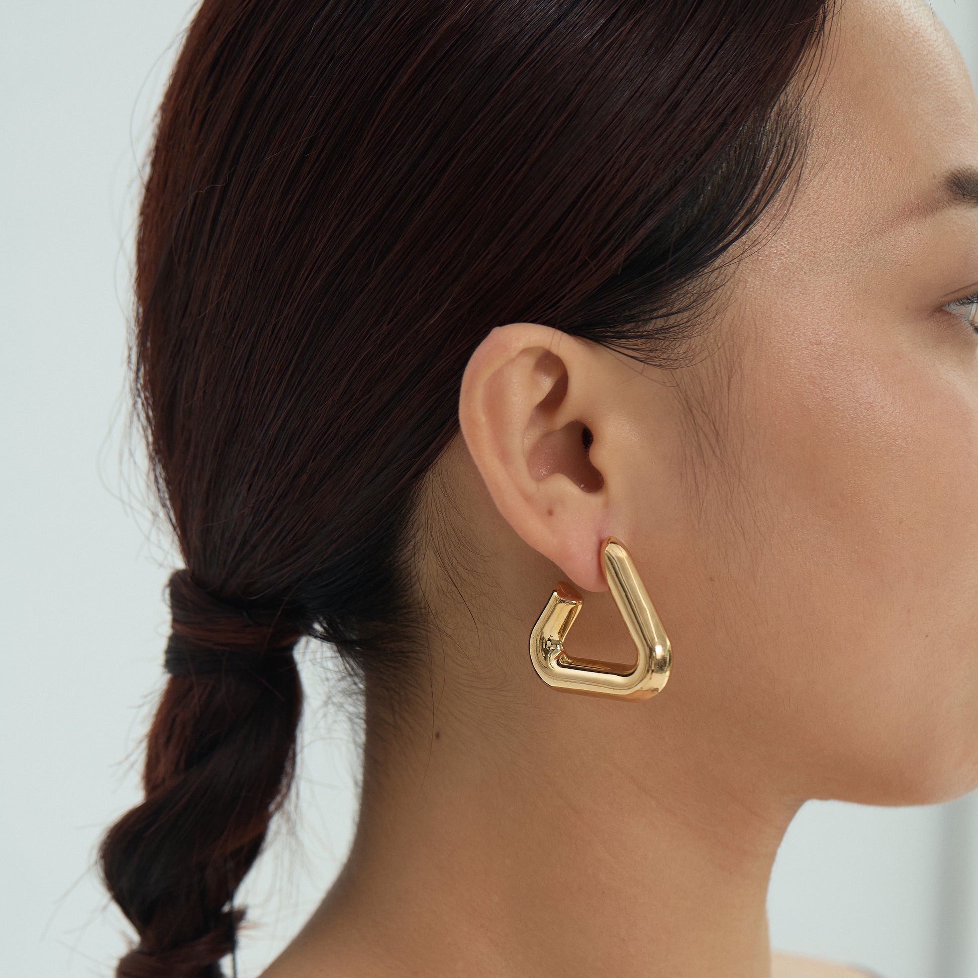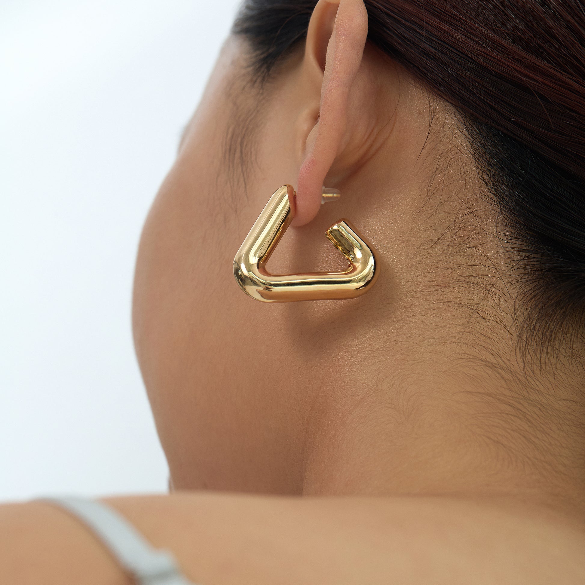 The Vector Earrings fuse clean lines with sculptural depth, creating a sharp-yet-smooth silhouette that’s bold, confident, and elegantly minimal. Crafted in high-polish gold, they add edge and sophistication to any look, from day to night.