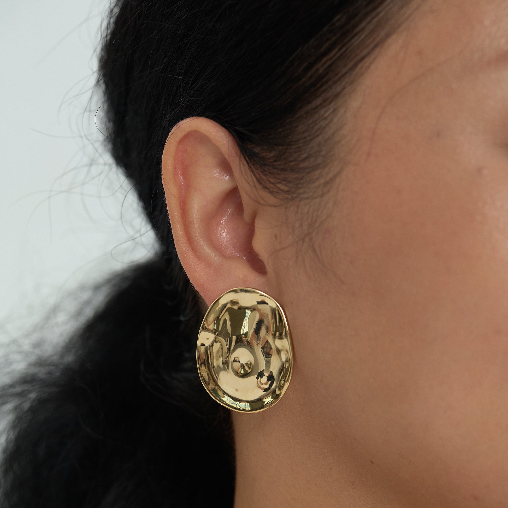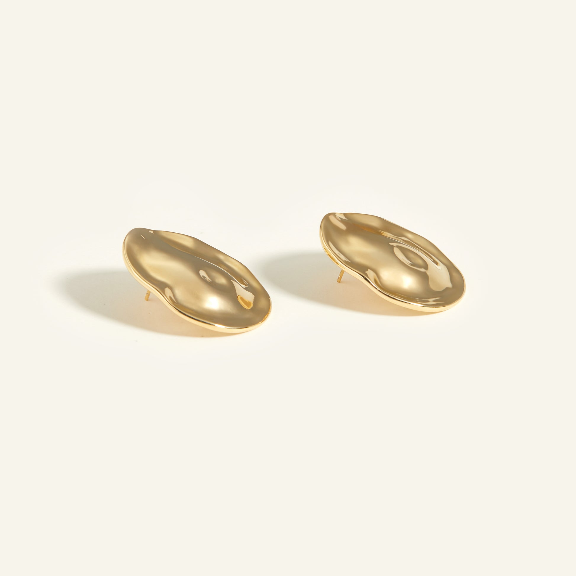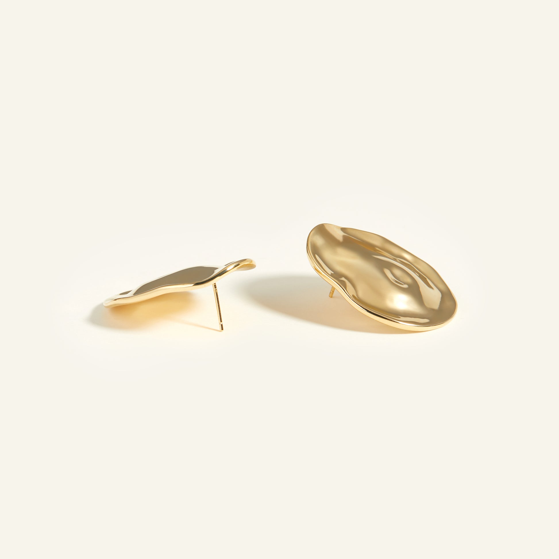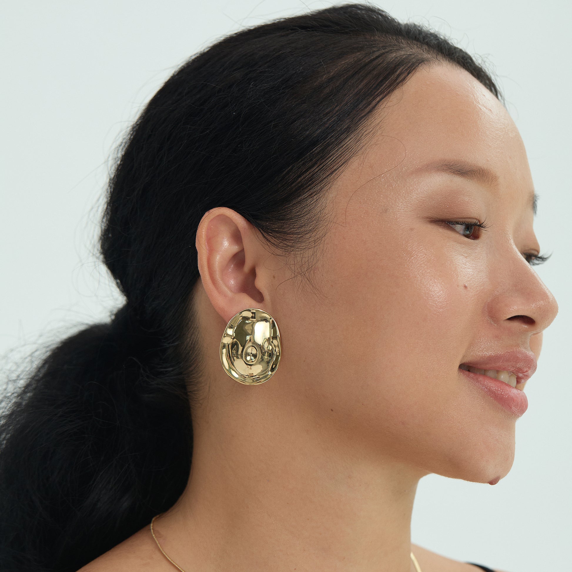 The Molten Calm Earrings are fluid sculptures for the ear, inspired by the motion of water and the softness of gold in its raw, liquid state. Their asymmetric, undulating form brings life and energy, reflecting a serene fusion of elegance and elemental power.