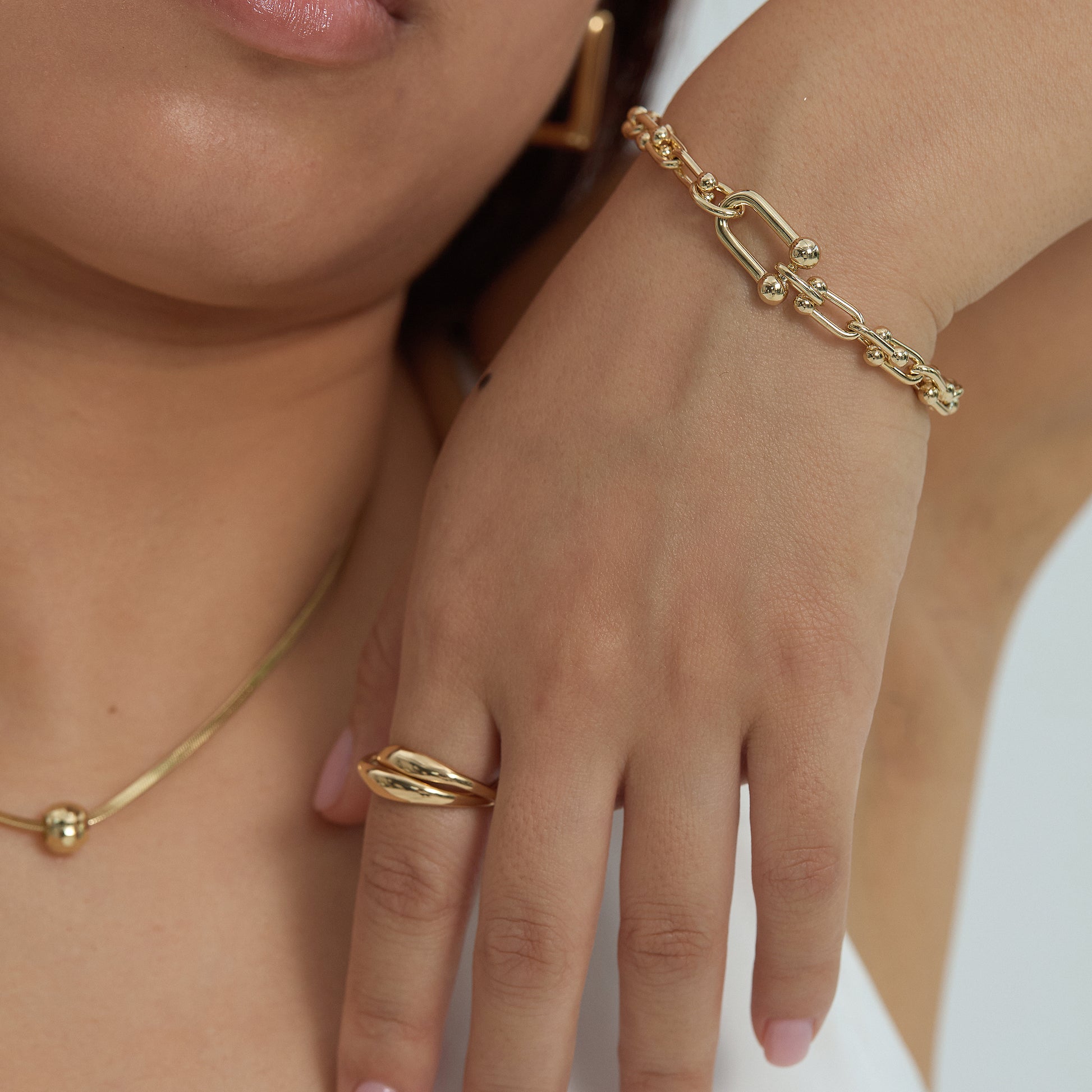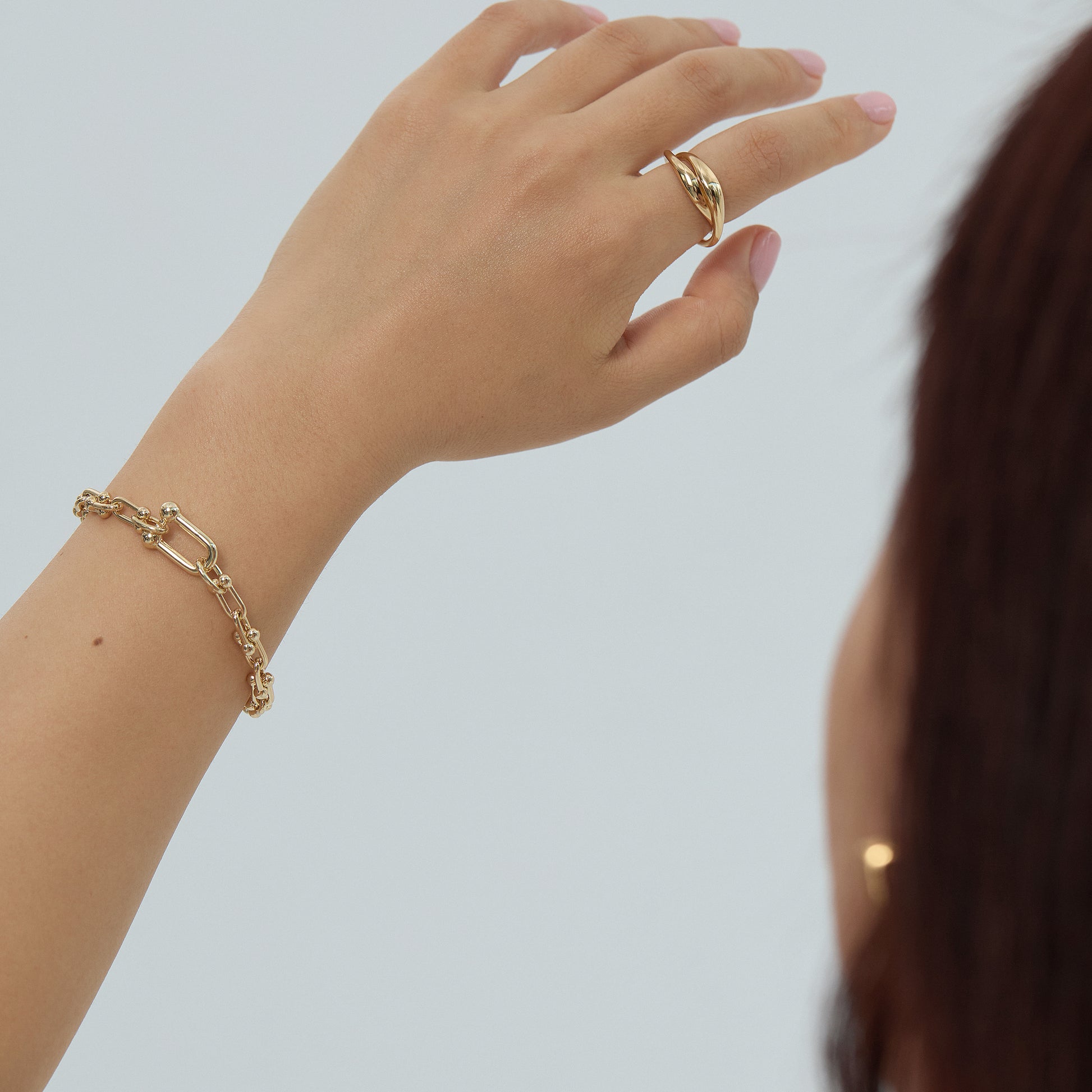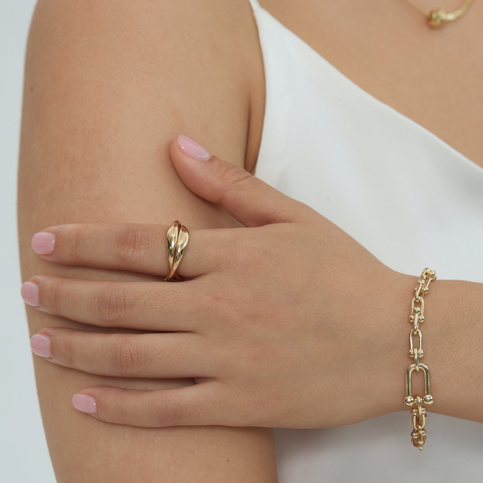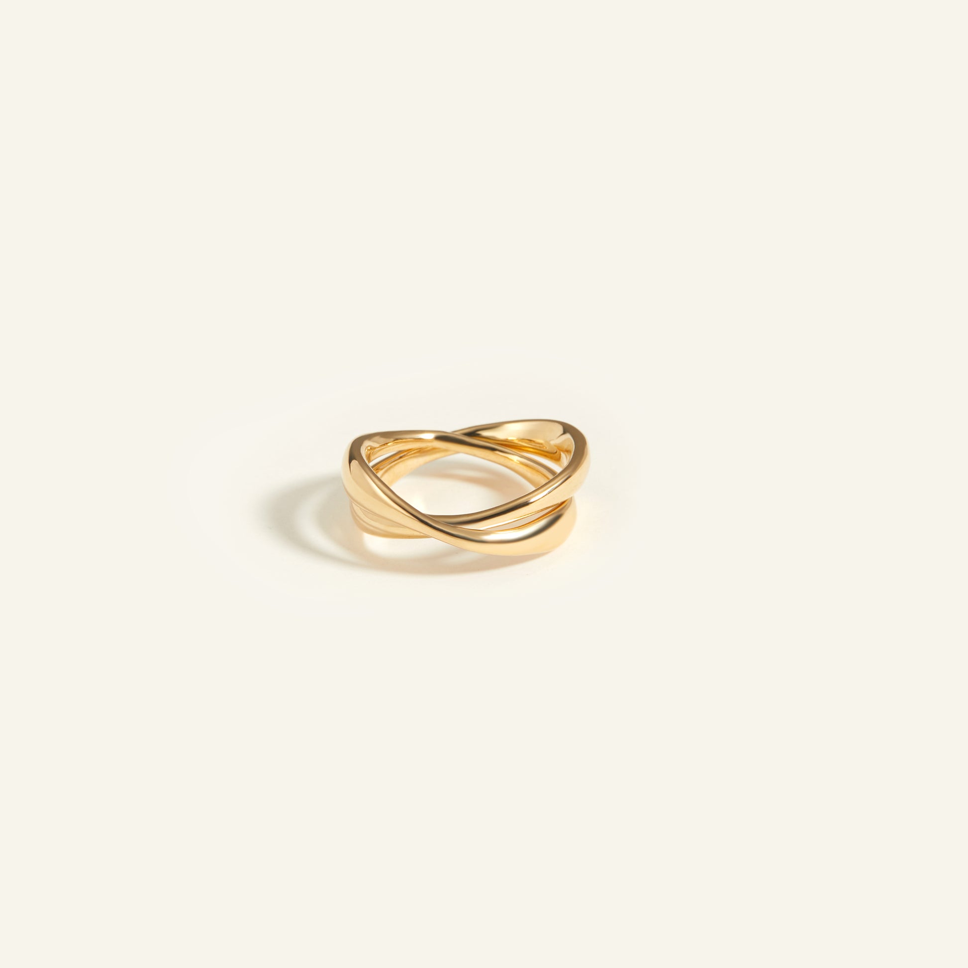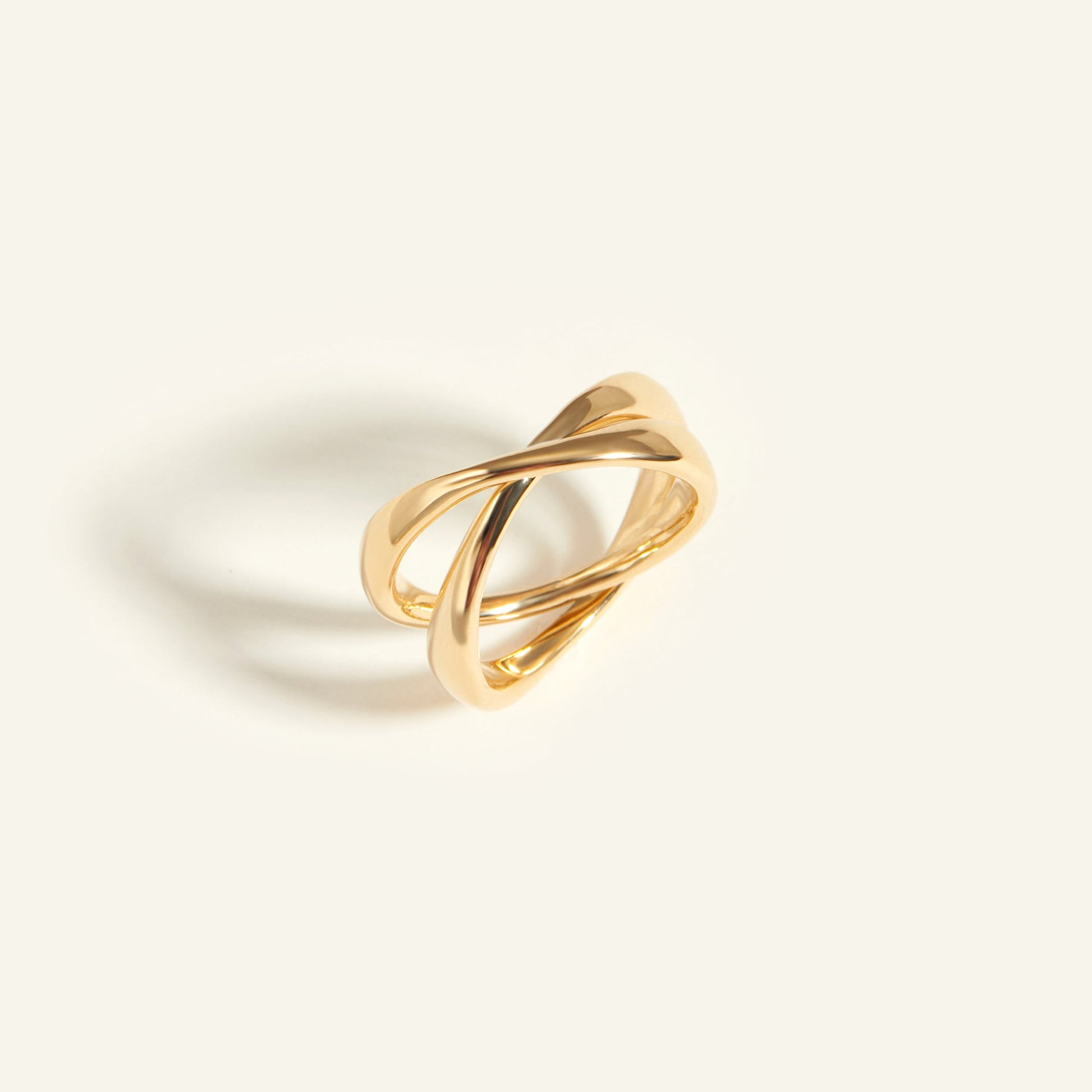 The Infinity Flow Ring is a graceful union of strength and softness — an endless loop symbolizing connection, resilience, and the natural rhythm of life. Its high-polish gold finish and fluid overlapping bands exude quiet confidence and sculptural sophistication.