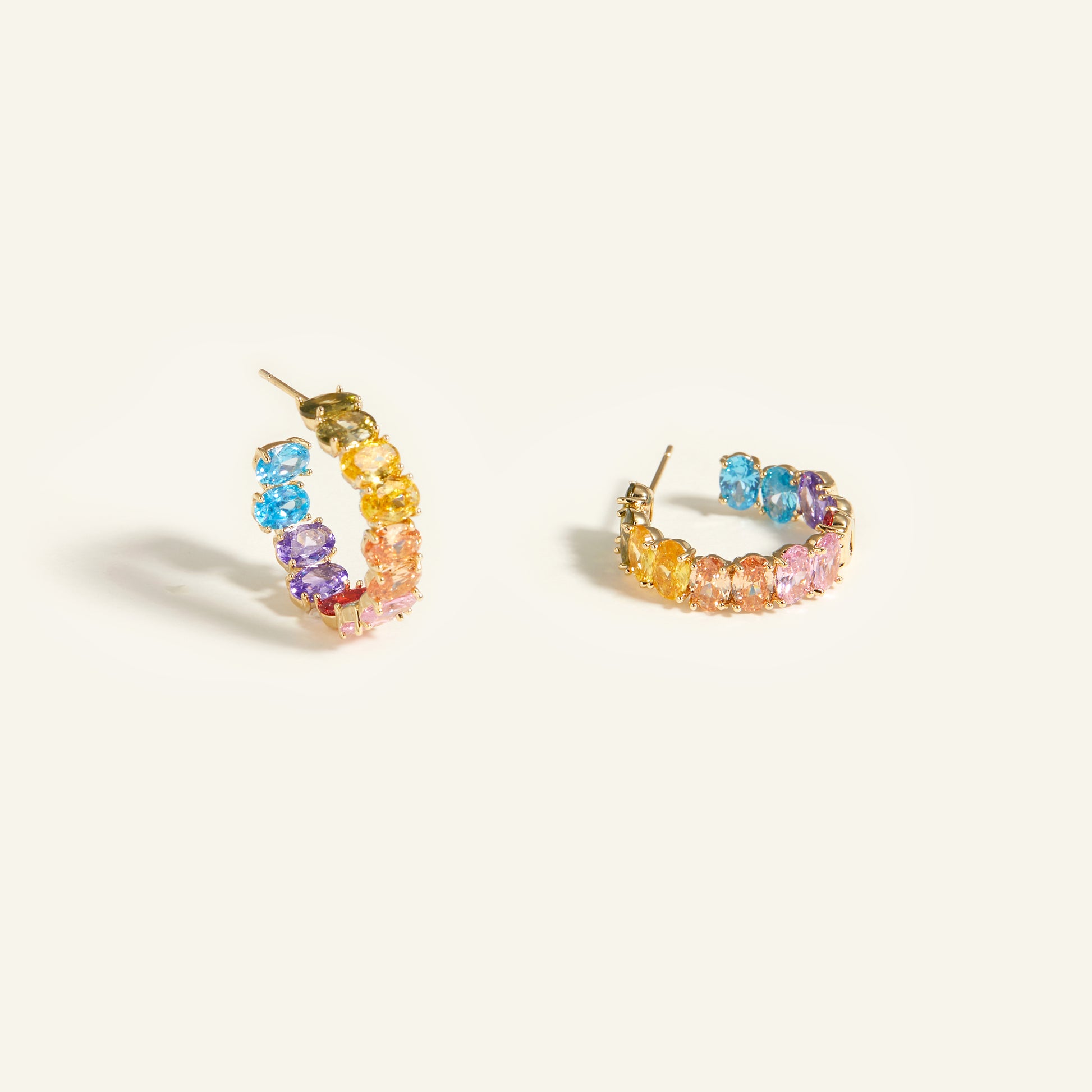 • Gold-tone setting with multicolored cubic zirconia
