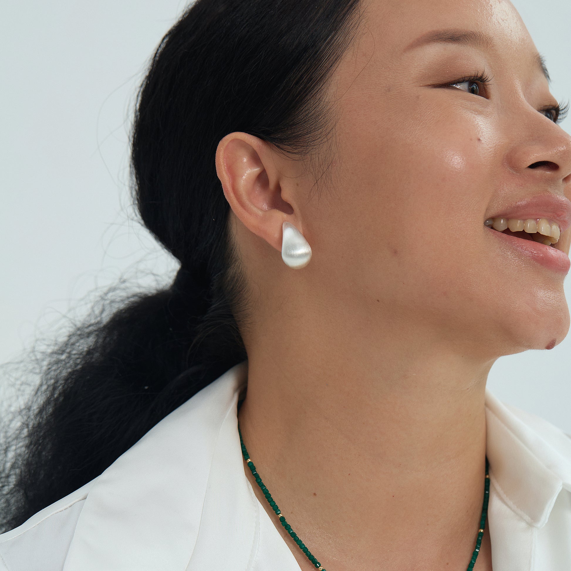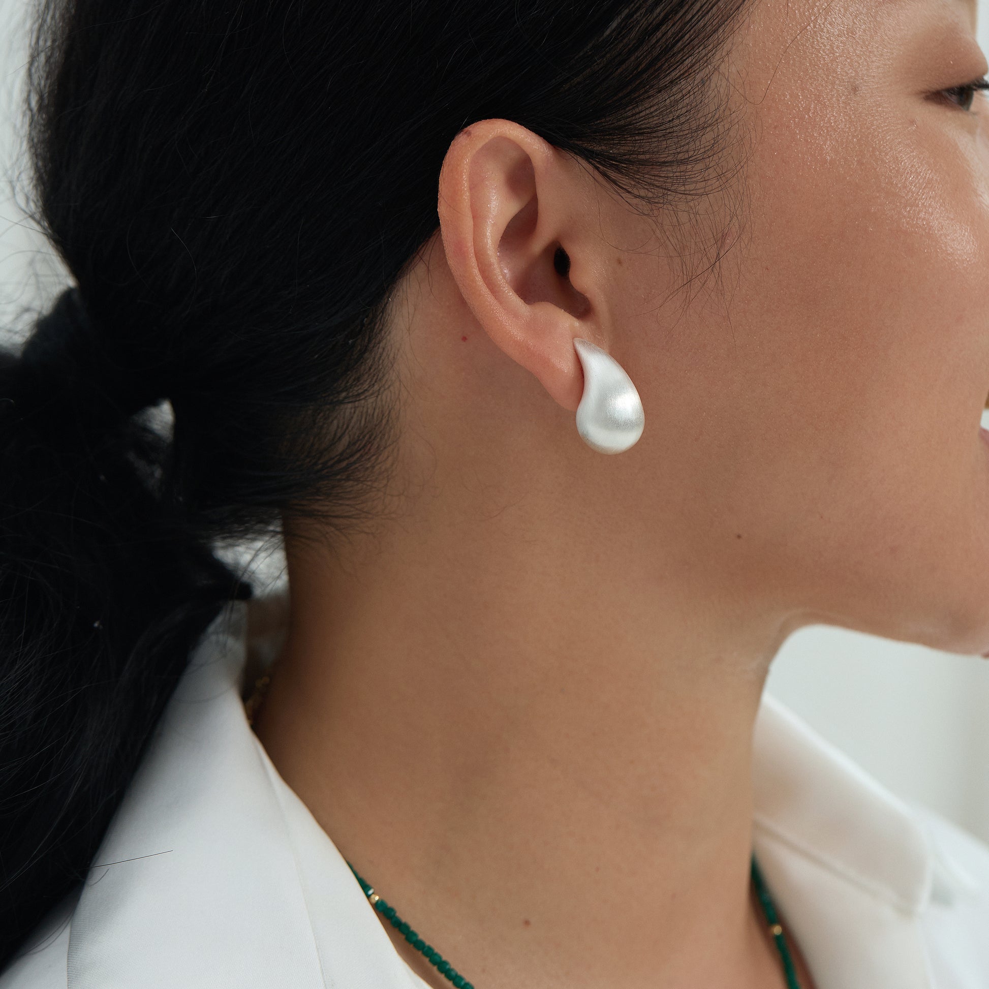 The Luna Drop Earrings are a modern ode to purity and flow, featuring a sculptural teardrop silhouette with a softly brushed silver finish. They evoke moonlit reflections on water—calm, fluid, and quietly powerful.