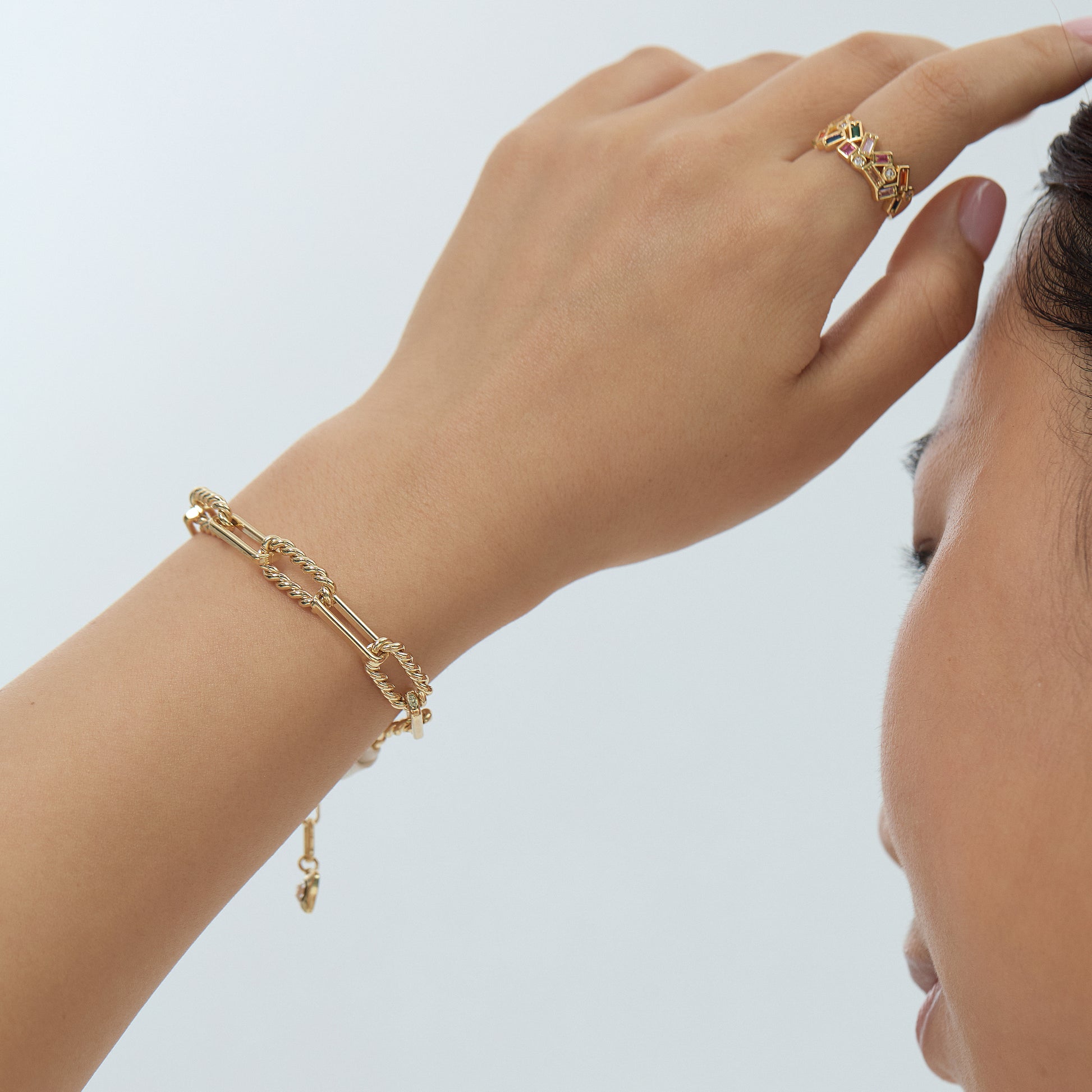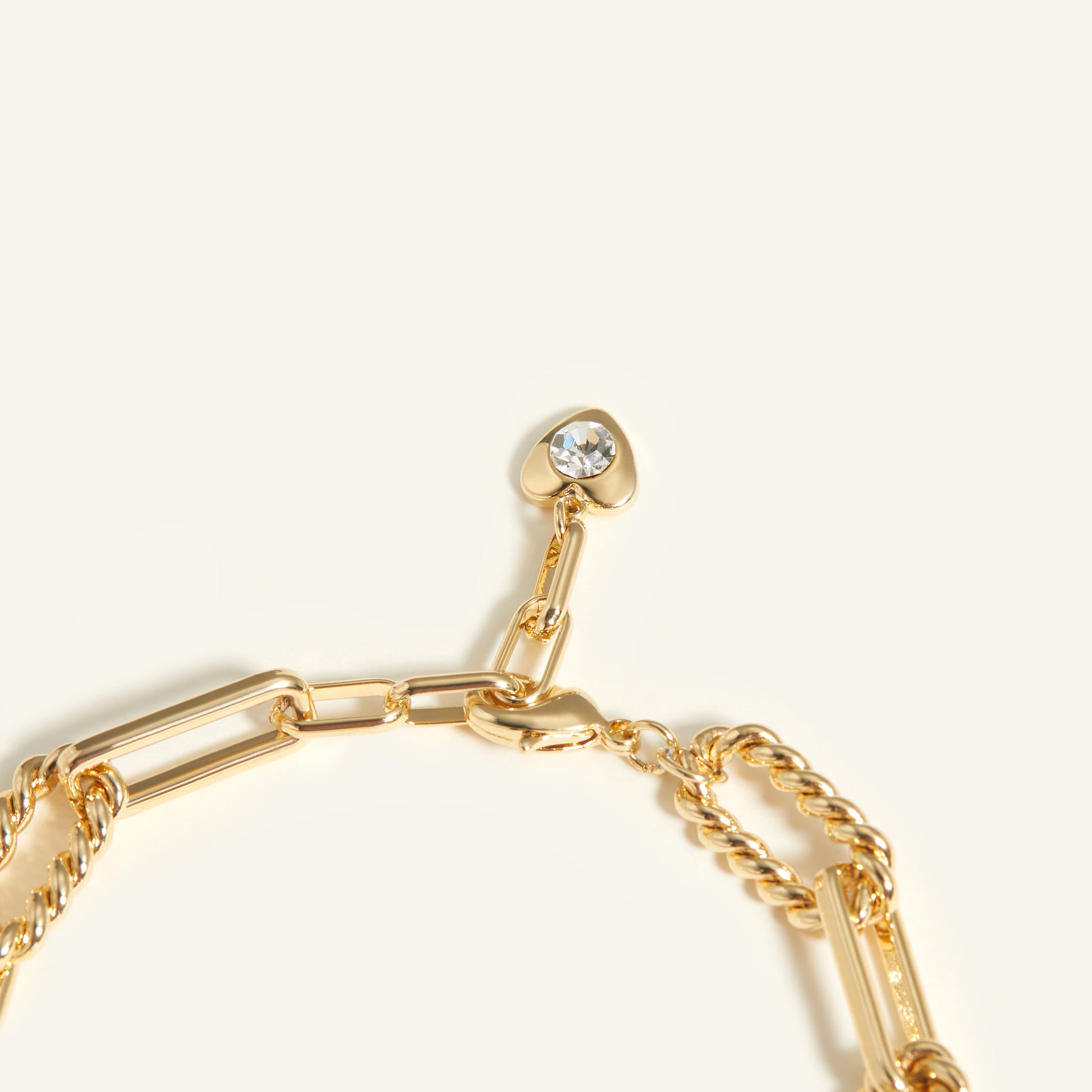 Step into your power with the LUX-LINK Bracelet — a radiant piece that channels lING’s signature fusion of elegance and energy. Designed with a balance of twisted and polished gold-tone links, this bracelet wraps your wrist in strength and sophistication. The heart-shaped charm crowned with a luminous crystal represents clarity and sincerity — a tribute to lING’s core values.