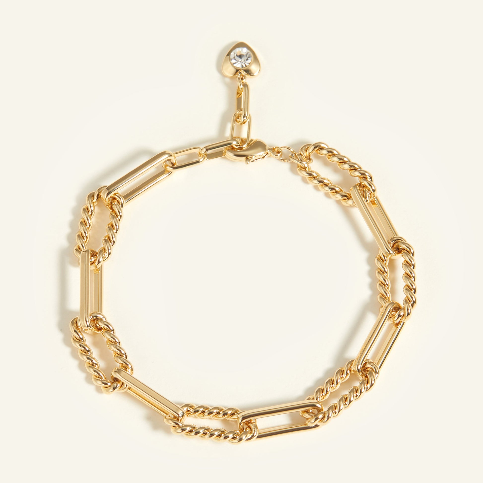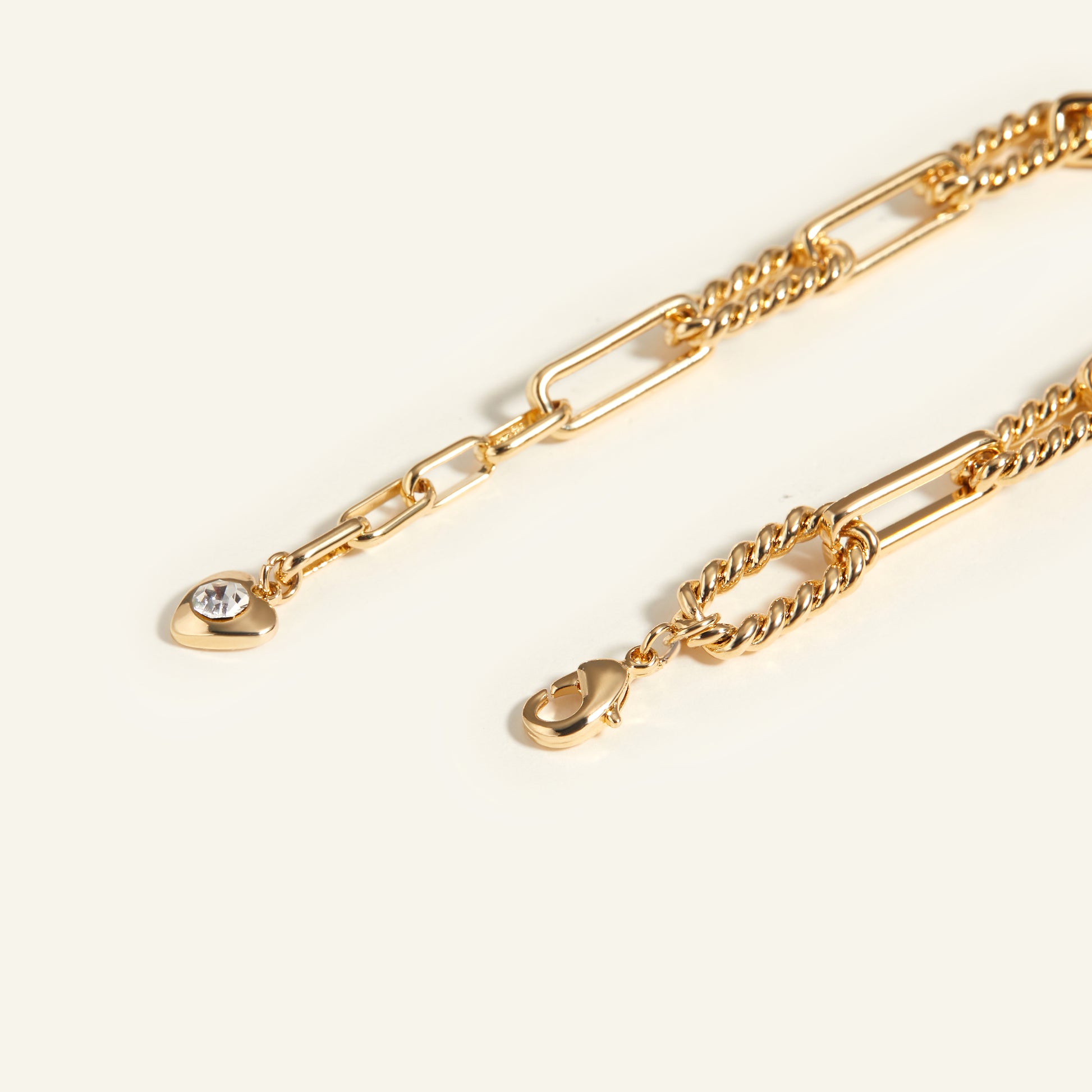 Features: Mixed-texture chain links, heart charm with clear crystal